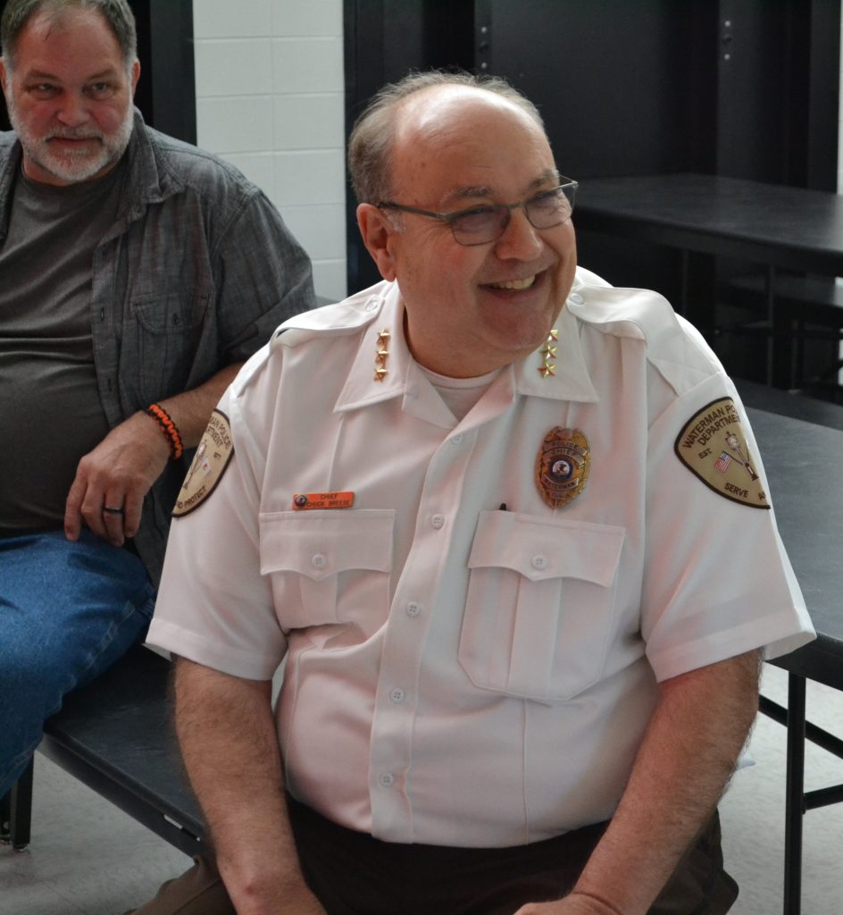 The retirement celebration for Chief Breese was held on June 3, 2018 at Indian Creek Middle School in Waterman.  The community, fellow police officers, co-workers, family, and friends all showed up to honor Chief Breese’s 37 years of service to Waterman.  A lunch was held with a ceremony following where Chief received many tokens of appreciation, from kind words of appreciation, to certificates, badges and many other momentos.  It was clear Chief was appreciated and well liked by the community.  The celebration ended with 21 firework salute!